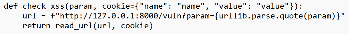 def check_xss(param, cookie={"name": "name", "value": "value"}):