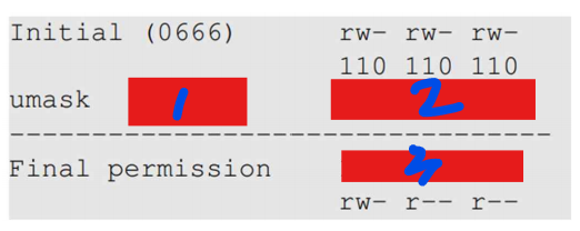 Q1. 다음 그림은 umask 값을 적용해 최종 파일 권한을 결정하는 과정을 보여준다.1, 2, 3에 들어갈 알맞은 값을 각각 8진수/2진수/2진수 형식으로 쓰시오. 더보기항목 내용① 0022 (umask 값 8진수)② 000 010 010 (umask의 이진수 표현)③ 110 100 100 (최종 권한의 이진수)→ 이진수 110 100 100은 8진수로 0644, 즉 rw- r-- r--임. Q2. 일반 사용자가 Set-UID로 설정된 루트 소유 프로그램을 실행했을 때, 아래 중 올바르게 설명된 것은 무엇인가? (1) RUID는 root가 되고 EUID는 사용자의 ID가 된다.(2) RUID와 EUID 모두 사용자의 ID로 유지된다.(3) RUID는 사용자의 ID, EUID는 프로그램 소유자의 ..
