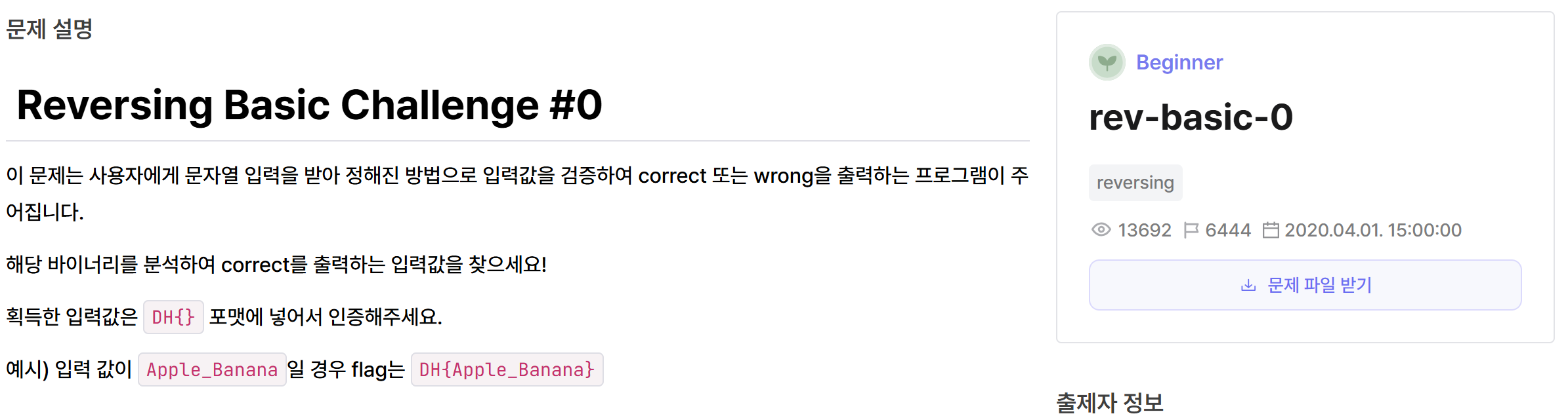 https://dreamhack.io/wargame/challenges/27 welcomeDescription이 문제는 서버에서 작동하고 있는 서비스(welcome)의 바이너리와 소스 코드가 주어집니다."접속 정보 보기"를 눌러 서비스 정보를 얻은 후 플래그를 획득하세요.서버로부터 얻은 플래그dreamhack.io[문제 정보] [문제 풀이 과정] 1. 바이너리 파일 분석 일단 바이너리 파일을 HxD에 넣어보았다. 가장 처음에 보이는 "ELF"가 무슨 뜻이 있었던 것 같아서 찾아보았다.ELF(Executable and Linkable Format) 란?더보기ELF(Executable and Linkable Format) 란?실행 파일, 목적 파일, 공유 라이브러리 그리고 코어 덤프를 위한 표준 파일 형..