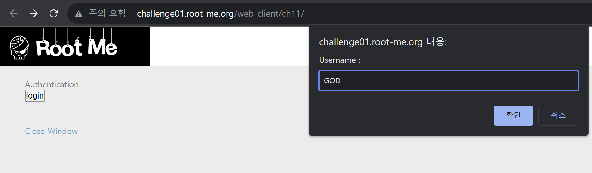 그리고 Close Window 를 눌러줬더니 문제를 풀던 창이 말 그대로 닫힌다.
